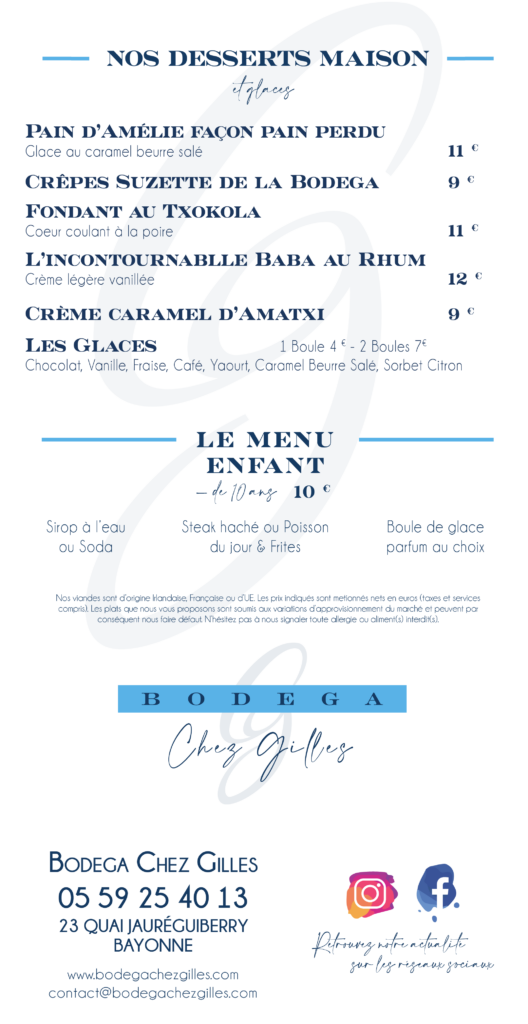 Notre carte Luc Dussart 11/02/2026 Trustindex vérifie que la source originale de l'avis est Google. Maître mots accueil et générosité Emilie Benito 25/01/2026 Trustindex vérifie que la source originale de l'avis est Google. Nous avons été très bien accueilli chez Gilles après le match Bayonne/Castres. Tout a été fait pour nous trouver une place alors que nous étions 11 et que tout était plein partout. Accueil au top du top de la part de toute l'équipe. Service rapide , plats tous très bons , toutes les assiettes sont reparties vides, les desserts excellents aussi. Nous reviendrons avec plaisir Merci encore Le petit groupe de supporters du CO SEVESTRE SEVESTRE 22/01/2026 Trustindex vérifie que la source originale de l'avis est Google. Plats très savoureux. (Assiette Landaise) Serveurs hyper sympathiques. Accueil très agréable ! A découvrir ! Laurence DUFAUT 01/01/2026 Trustindex vérifie que la source originale de l'avis est Google. Très bel accueil j’adore Phil Marc 30/12/2025 Trustindex vérifie que la source originale de l'avis est Google. Servi en terrasse à midi. Formule à 23 €. Les plats sont bien présentés et bons. Le personnel est souriant. Le pain perdu est excellent en dessert. Thomas Audrey 26/12/2025 Trustindex vérifie que la source originale de l'avis est Google. Excellente. Une épaule d’agneau confite à tomber, et tout le reste au top! Maxime Adda 22/12/2025 Trustindex vérifie que la source originale de l'avis est Google. Super moment passé dans ce restaurant. Nous étions deux et nous avons très bien mangé. L’accueil et le service étaient vraiment agréables, avec une équipe souriante et attentionnée. Un très bon moment, je recommande sans hésiter ! Valerie Debarque 30/11/2025 Trustindex vérifie que la source originale de l'avis est Google. Un excellent moment grâce au délicieux repas.